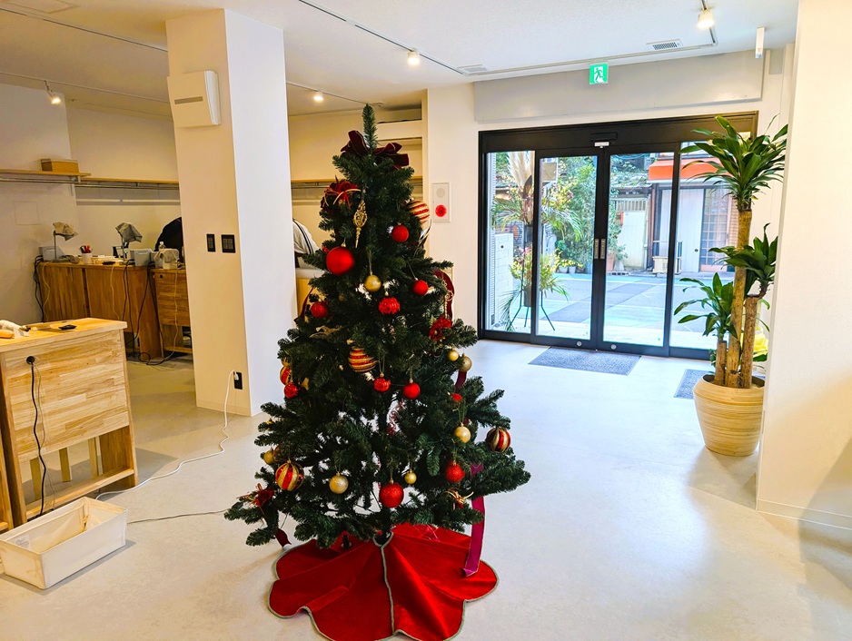 店内は明るく、清潔感があり、季節柄クリスマスツリーが飾られています。
